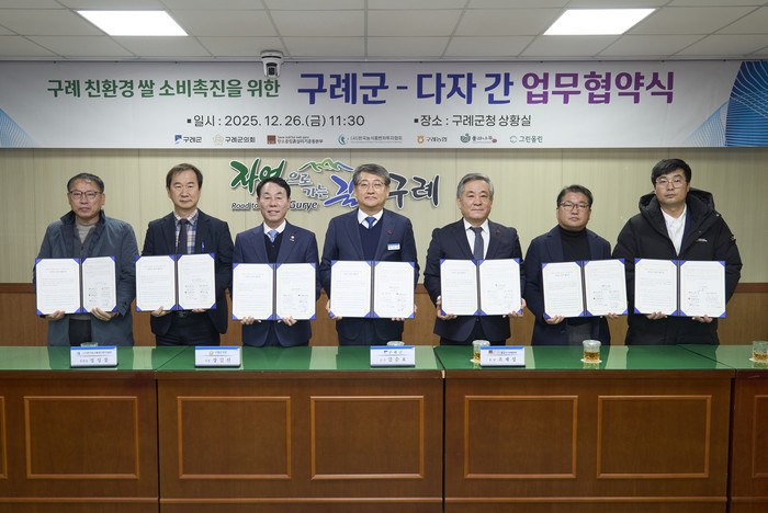 구례군은 ‘흙 살리기 고장’이라는 지역 정체성을 바탕으로 화학비료와 농약 사용을 줄이고 토양의 생명력을 회복하는 친환경 농업을 꾸준히 실천해 오고 있다. 이번 협약은 이러한 노력에 생산·유통·소비·금융을 아우르는 협력 구조를 더함으로써, 친환경 쌀을 중심으로 한 지속 가능한 농업 모델을 한 단계 끌어올리는 계기가 될 것으로 기대된다.