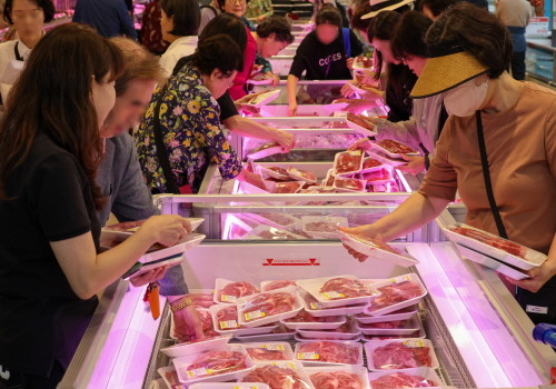 | ▲2025년 추석 맞이 '소(牛)프라이즈 대한민국 한우세일' 행사가 열린 지난 9월 26일 서울 서초구 농협하나로마트 양재점에서 고객들이 한우를 고르고 있다.(사진= 뉴스1) |