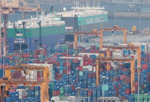 | ▲지난달 24일 경기 평택항 수출 야적장에 컨테이너들이 쌓여있다.(사진= 뉴스1) |