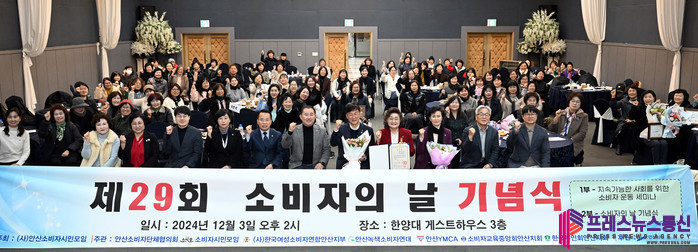 [프레스뉴스] 장현준 기자= 안산시(시장 이민근)는 지난 3일 한양대 게스트하우스에서 안산소비자단체협의회 회원과 소비자 등이 참여한 가운데 ‘제29회 소비자의 날 기념식 및 세미나’를 개최했다고 4일 밝혔다.