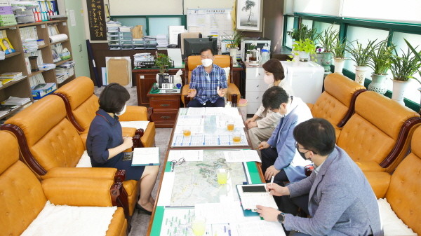 이날 시의회 도시환경위원장실에서 열린 간담회에는 의원연구단체 소속 박태순, 주미희, 추연호 의원과 의회사무국 관계자들이 참석했다.