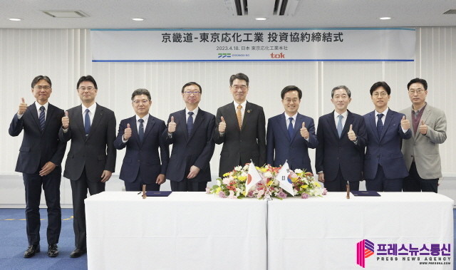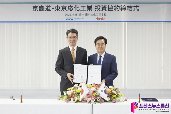 김동연 경기도지사는 방일 3일 차인 18일 일본 가나가와현 가와사키시 도쿄오카공업 본사에서 타네이치 노리아키(Taneichi Noriaki) 일본 도쿄오카공업 대표이사와 이 같은 내용의 투자협약을 체결했다.