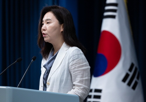 ▲강유정 대통령실 대변인이 13일 서울 용산 대통령실 청사에서 이재명 대통령의 차관급 추가 인선을 발표하고 있다.(사진= 뉴스1) |