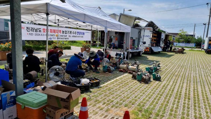 수해를 입은 한 농업인은 "무더운 날씨와 열악한 환경에서도 구슬땀을 흘리며 농기계를 수리해주셔서 감사하다"며 고마움을 전했다.