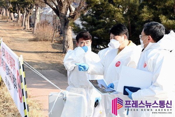 [프레스뉴스] 강보선 기자= 최근 화성시 산란계 농장에서 이번 겨울 들어 도내 처음으로 고병원성 조류인플루엔자(AI)가 발생한 가운데, 이한규 행정2부지사가 27일 포천시 군내면 포천천 일대를 찾아 차단방역 상황을 현장 점검했다.