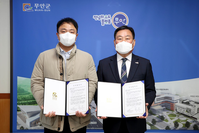 [전남=프레스뉴스] 강래성 기자= 무안군은 9일 군청 군수실에서 몽탄특화농공단지 입주를 희망하는 (유)에스에이치산업, (유)라바꿈 등 2개 기업과 투자협약을 체결했다고 밝혔다.
