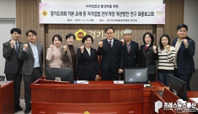 [프레스뉴스] 김대일 기자= 경기도의회 의회운영연구회(회장 김정영, 국민의힘, 의정부1)는 지난 21일 경기도의회 의회운영위원회 회의실에서 ‘자치입법권 활성화를 위한 「경기도의회 기본 조례」 등 자치입법 전부개정 개선방안 연구’ 최종보고회를 개최했다.
