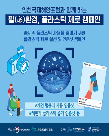 또한 최근 해양쓰레기가 세계적인 현안으로 떠오르고 국내에서도 해양환경 문제에 대한 경각심이 고조되는 가운데 해안쓰레기 중 플라스틱이 가장 높은 비중을 차지하는 등 해양 환경오염의 심각성에 대해 함께 공감하고 플라스틱 줄이기 실천을 다짐하는 ‘필(必)환경, 플라스틱 제로 캠페인’ 및 ‘인증샷 이벤트’를 진행한다. 해변가 플라스틱 줍기 및 개인 텀블러 사용 등 플라스틱 제로를 위한 활동과 인증샷을 공식 누리집에 업로드 하면 인기 게시글을 선정해 다양한 에코 상품을 제공한다.