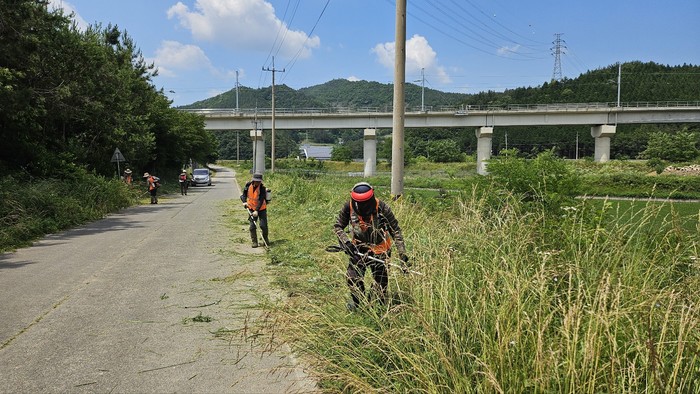 | ▲보성읍, 깨끗하고 친절한 보성 만들기 추진-보성읍 주요 도로변 풀베기활동/보성군 제공 |