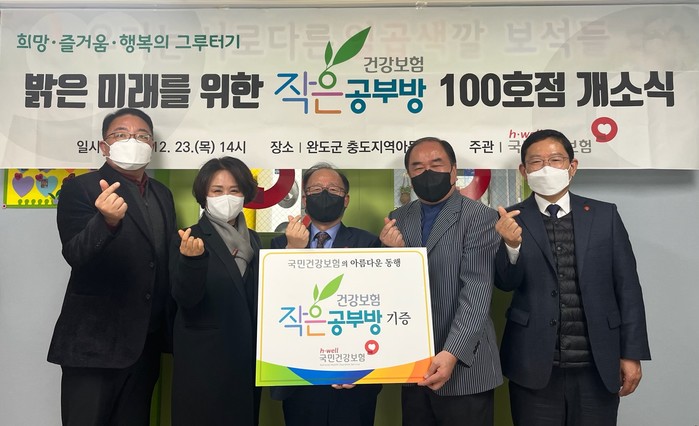[광주=프레스뉴스] 강래성 기자= 국민건강보험공단 광주전라제주본부(본부장 정일만)는 지난 23일 전남 완도군 충도지역아동센터(센터장 김태성)에서 건강보험 작은공부방 100호점 개소식을 가졌다.