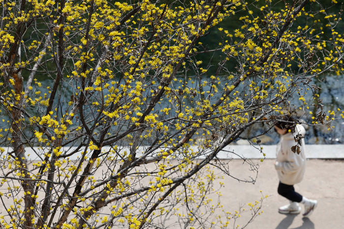 | ▲일교차가 15도 안팎으로 크고 한낮 포근한 날씨를 보인 16일 서울 종로구 청계천에 산수유가 피어 있다./사진=뉴스1 |