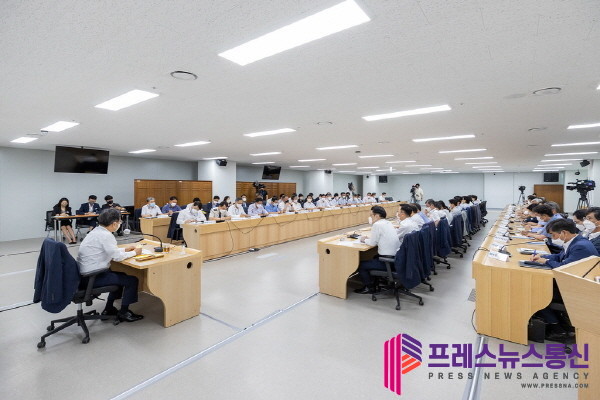이날 회의는 특별한 형식 없이 김 지사와 참석자들 간 자유로운 의견을 교환하는 방식으로 이뤄졌다. 참석자들은 폭염과 코로나19, 공공기관 현안과 경기도 예산안 등에 대한 논의를 진행했다.