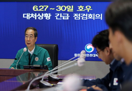 한 총리는 모두발언에서 “인명피해를 최소화하는 것이 무엇보다 중요하다”며 “위험 상황을 최대한 사전에 예측해 골든타임을 확보하고, 침수 우려 지역 주민들에게 대피 및 행동 요령을 신속하게 안내해야 한다”고 당부했다.