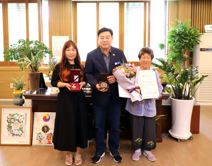 ▲영광군은 6.25참전용사 故진태수 상병의 여동생인 진만님 여사님과 조카 진채령씨에게 화랑무공훈장을 전수하는 행사를 가졌다.(사진제공=영광군) |