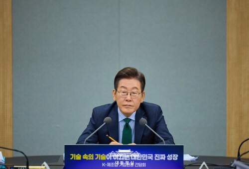 ▲이재명 대통령이 3일 경기 안산시 새솔다이아몬드공업에서 열린 K-제조업 기업현장 간담회를 주재하고 있다.(사진= 대통령실) |