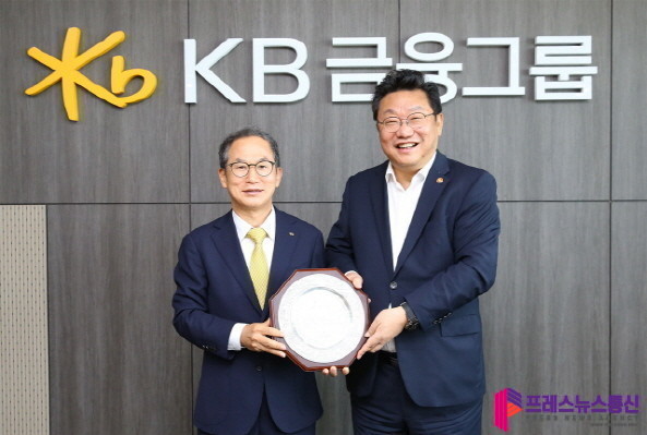 [프레스뉴스] 류현주 기자= KB금융그룹(회장 양종희)이 지난 9일 KB국민은행 여의도 신관에서 주형환 저출산고령사회위원회 (이하 저고위) 부위원장과 양종희 KB금융그룹 회장이 참석한 가운데, 저고위로부터 저출생 극복 지원과 일·가정 양립 환경 조성을 선도한 공로를 인정받아 감사패를 받았다.