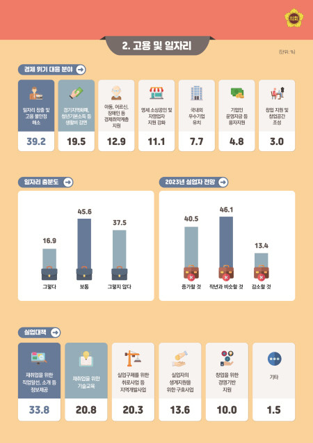 의회·도에 ‘고용안정’(39.2%), ‘생활비 감면’(19.5%), 경제취약계층 지원‘(12.9%) 등 주문
