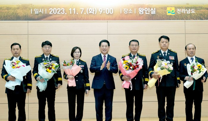 김영록 지사는 이날 오전 도청 왕인실에서 열린 정례조회를 통해 도민 호평을 받으며 성공적으로 치르거나 진행되는 행사 및 성과 등을 일일이 열거하며 “도청 가족의 땀과 눈물, 헌신으로 일해준 성과”라고 치하했다.