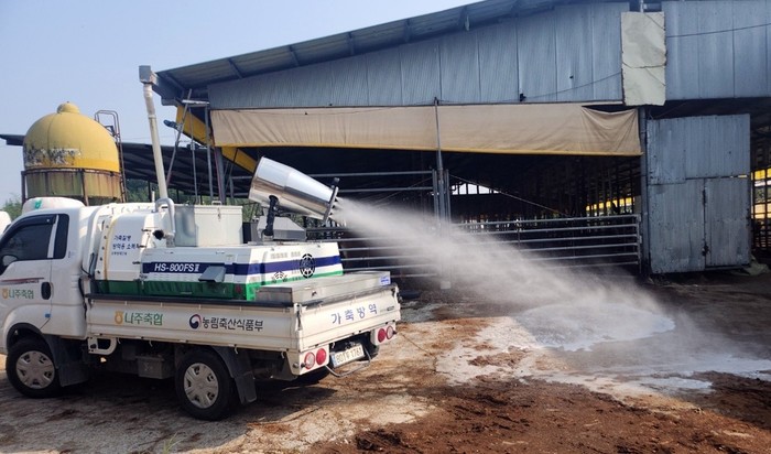 | ▲나주시, 구제역 유입 차단 위한 축산농가 소독/나주시 제공 |