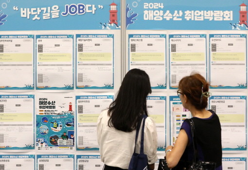 | ▲지난 9월 부산 해운대구 벡스코 제1전시장에서 열린 '2024 해양수산 취업박람회'에서 구직자들이 채용 정보를 살펴보고 있다.(사진= 뉴스1) |