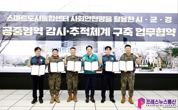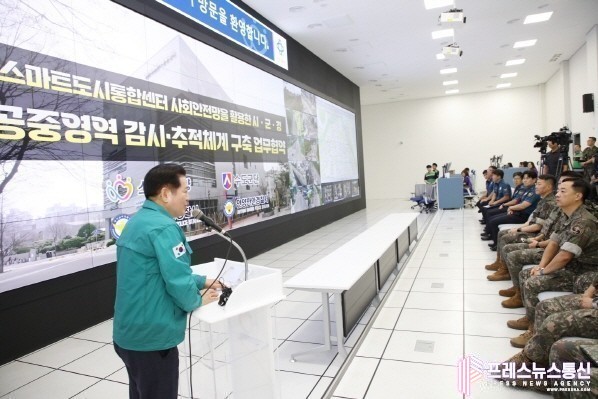 [프레스뉴스] 장현준 기자= 안양시는 19일 14시 스마트도시통합센터에서 수도군단, 안양동안경찰서, 안양만안경찰서와 ‘공중영역 감시 및 추적 체계 운영을 위한 업무협약’을 체결하고, 최근 발생한 오물풍선과 같은 공중영역의 위협으로부터 시민 안전을 확보하는 데 주력한다.