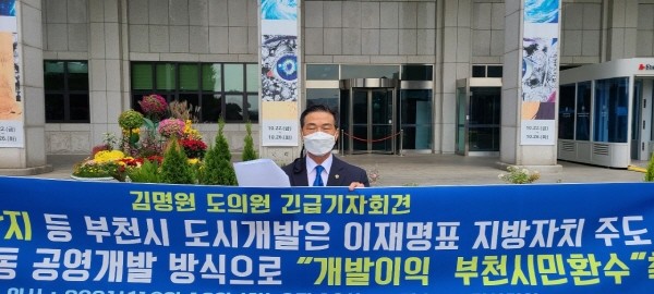 김명원 위원장은 “이재명표 지방자치 주도 민.관 합동 공영개발 방식으로 하여 개발이익이 부천시민에게 환수토록 해야 한다”면서, “이재명표 성남시 대장동 개발방식은 당시 대장동 부지가 사유지이기에 성남시에 매각수입은 없었다. 하지만 인허가권을 활용, 개발이익 5,503억원을 성남시민에게 환수한 것이다”고 말했다.