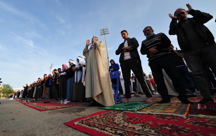 [프레스뉴스] 채정병 특파원=2일(현지시간) 라마단 종료와 함께 시작된 이슬람의 대표명절 이드 알 피트르가 시작된 가운데 요르단 무슬림들이 광장에 모여 합동 기도회를 하고 있다.