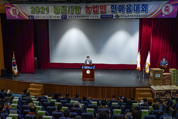 [전남=프레스뉴스] 강래성 기자= 한국농촌지도자목포연합회가 지난 2일 목포시민문화체육센터에서 ‘2021 농촌사랑 농업인 한마음대회를 개최했다.