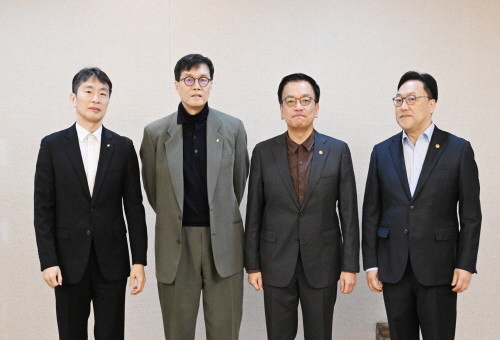 | ▲최상목 대통령 권한대행 부총리 겸 기획재정부 장관이 21일 정부서울청사에서 열린 '거시경제·금융현안 간담회'에 앞서 기념촬영을 하고 있다. 왼쪽부터 이복현 금감원장, 이창용 한국은행 총재, 최상목 대통령 권한대행 부총리, 김병환 금융위원장. (사진= 뉴스1) |