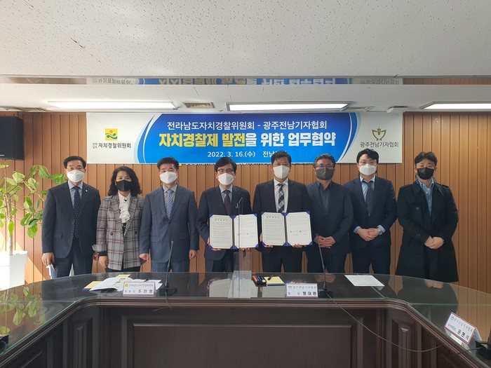 전남도자치경찰위원회는 16일 전남도청에서 광주전남기자협회와 ‘자치경찰제 발전을 위한 업무협약’(MOU)을 했다.