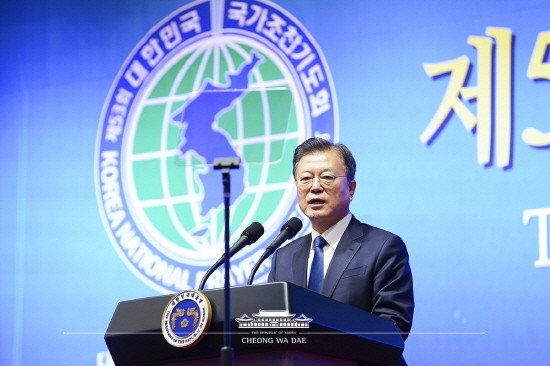 마지막으로 문 대통령은 “한반도의 남과 북 역시 하나의 생명공동체”라며 “비핵화 속의 평화와 번영의 한반도를 실현하는 것은 또 하나의 ‘공의와 회복’이므로 대한민국과 한반도의 미래를 위해서도 기도해 주시기 바란다”고 말했다.
