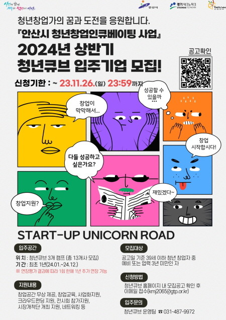 | ▲ 경기테크노파크, 안산시 2024년도 상반기 청년큐브 입주기업 모집 포스터(사진=경기테크노파크) |