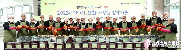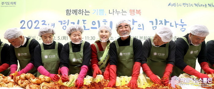 [프레스뉴스] 김대일 기자= 염종현 경기도의회 의장과 도의원들이 5일 도의회 본회의장 앞 2층 로비에서 ‘사랑의 김장 나눔행사’를 실시했다.