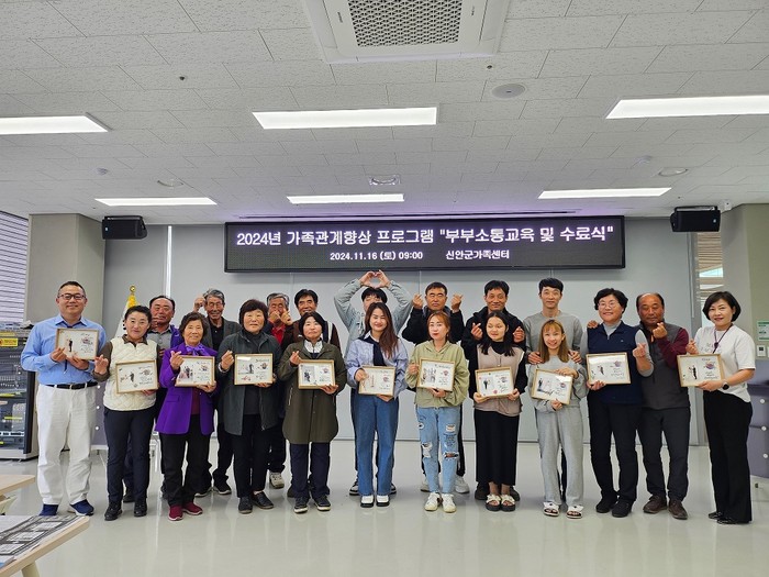 [전남=프레스뉴스] 강래성 기자= 신안군(군수 박우량)은 지난 11월 16일 가족관계 향상 프로그램 대상자 24명과 함께 신안군 가족센터에서 총 4 회기의 프로그램을 성공적으로 마치고 수료식을 개최했다.