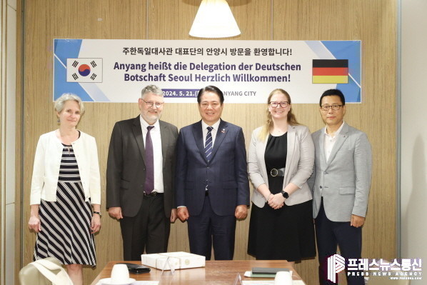 22일 안양시에 따르면, 바이써트 공관차석 등 주한독일대사관 방문단이 이날 오후 2시부터 최근 신축 이전한 스마트도시통합센터와 메타존, 안양예술공원 등을 방문했으며, 최 시장과 만찬을 갖고 간담을 나눴다.