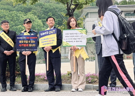 1일 성포고 정문서 실시된 캠페인서 학생 도박·학교 폭력 근절 등 위한 피켓 활동 벌여