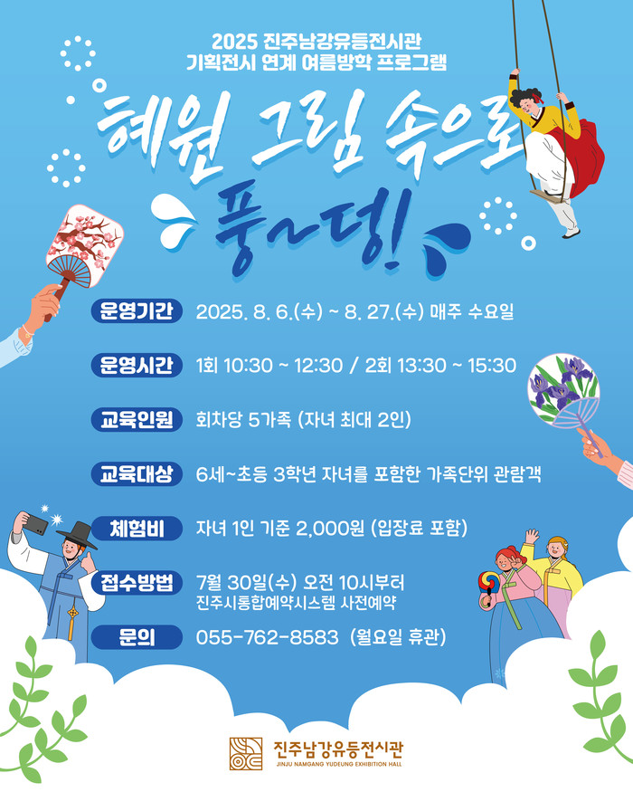 사전 예약은 7월 30일부터 진주시 통합예약시스템에서 선착순으로 접수하며, 프로그램 관련 세부 사항은 유등전시관 누리집(https://www.jinju.go.kr/yudeung/) 또는 전화(055-762-8583)로 문의할 수 있다.