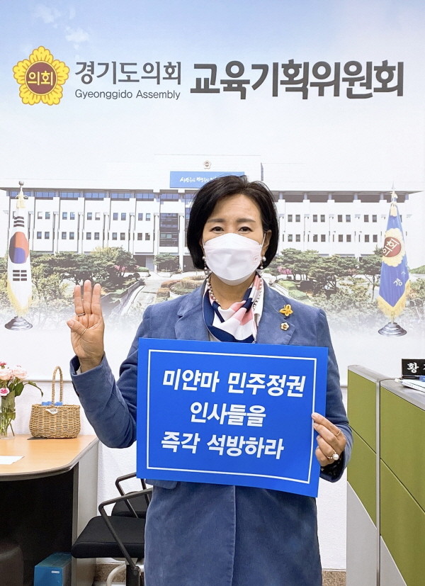 행사에 참석한 정윤경 위원장은 “재한 미얀마 유학생 연합회 학생들을 보며 교육기획위원장으로써 안타까움과 깊은 공감”을 나타내며 “미얀마에 민주주의 꽃이 활짝 필 수 있길 기원하고, 미얀마시민 불복종 운동의 상징인 세 손가락의 경례로 그들과 함께하고 있다는 응원의 메시지를 전한다”고 말했다.