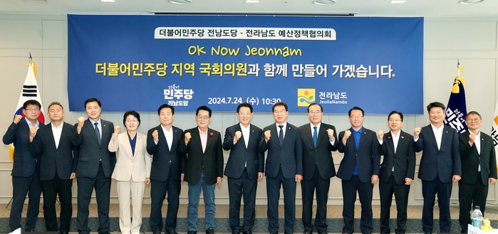 | ▲더불어민주당 전남도당-전라남도 예산정책협의회(전남특별자치도 특별법 제정 촉구 성명서 발표)/전라남도 제공 |