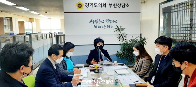 [프레스뉴스] 김대일 기자= 경기도의회 교육기획위원회 부위원장 황진희 의원(더민주, 부천3), 건설교통위원회 위원장 김명원 의원(더민주, 부천6)은 양정숙 시의원(더민주,부천(다))와 부천시 관계자를 비롯하여 플랫폼 관계자와 경기도의회 부천상담소에서 반려동물의 복지정책에 관하여 열띤 토론의 자리를 마련했다.