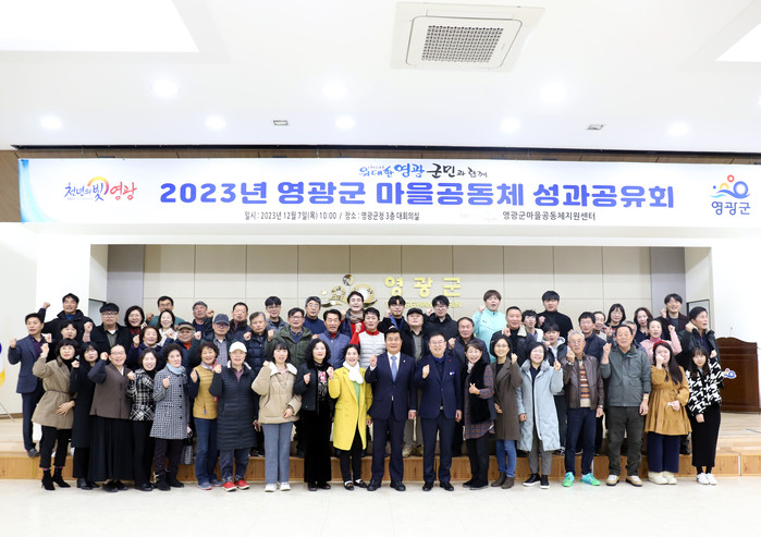 [전남=프레스뉴스] 차윤기 기자= 전남 영광군(군수 강종만)은 지난 7일 군청 대회의실에서 영광군수, 군의회 의장, 35개소 마을공동체 대표와 실무자 등 80여 명이 참석한 가운데 2023년 영광군 마을공동체 활동 성과공유회를 개최했다.
