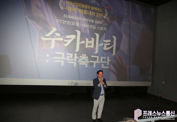 FC안양 구단주이기도 한 최 시장은 이날 극장을 찾아 “연고 축구단과의 이별을 통해 소중함을 느끼고 해후하는 모습을 담은, 축구 영화가 아닌 ‘사랑’ 영화라고 느껴지기도 한다”며 “축구를 통해 안양의 역사를 더 이해하고 자긍심을 가질 수 있는 시간이 되시길 바란다”고 말했다.