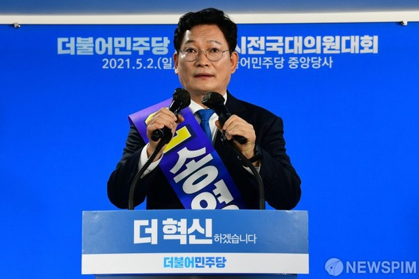 | ▲ 더불어민주당 신임 대표로 선출된 송영길 의원.(사진=뉴스핌.뉴스플로우) |