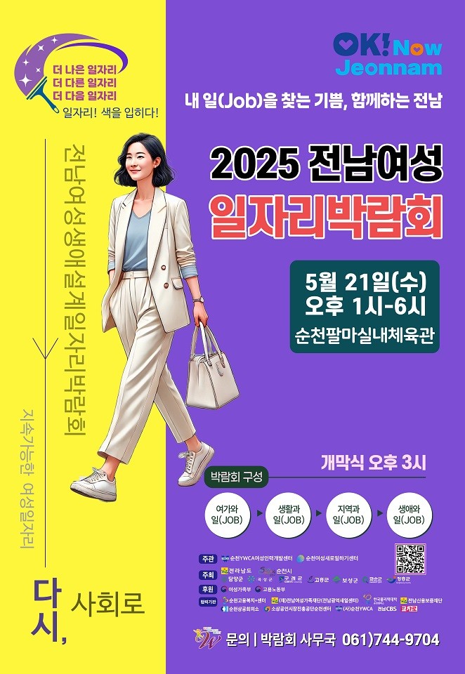 [전남=프레스뉴스] 강래성 기자= 순천시(시장 노관규)는 오는 21일 오후 1시부터 6시까지, 순천팔마실내체육관에서 취업을 희망하는 여성들에게 일자리 정보를 제공하고 취창업을 연계하는 「2025년 전남여성생애일자리박람회」를 개최다고 밝혔다.