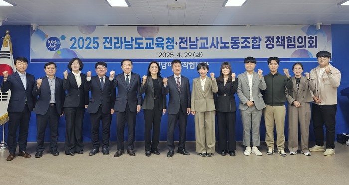 [전남=프레스뉴스] 강래성 기자= 전라남도교육청(교육감 김대중)과 전남교사노동조합(위원장 김신안)은 29일 청사 중회의실에서 노사 양측 관계자들이 참석한 가운데 ‘2025년 정책협의회 개회식’을 갖고 오는 5월 9일까지 협의회를 진행한다.