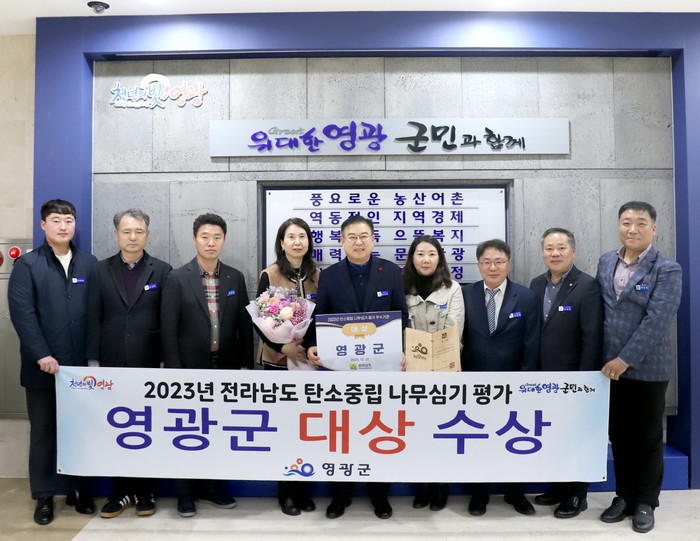 [전남=프레스뉴스] 차윤기 기자= 전남 영광군(군수 강종만)은 지난 12일 전라남도가 주관하는‘2023년도 탄소중립 나무심기 평가’에서 대상을 수상하였다. 이는 지난해 최우수상에 이은 2년 연속 수상이다.
