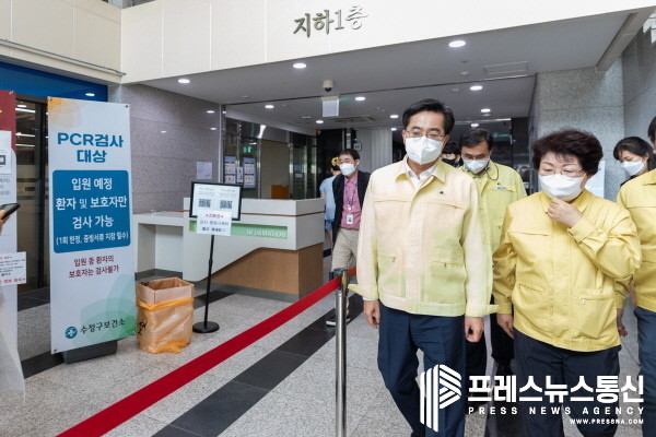 | ▲ 1일 오전 김동연 경기도지사가 성남시의료원에서 코로나19 재유행 대응 현장 점검을 하고 있다.(사진=경기도) |