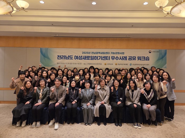 11월 28일 영암 호텔현대에서 진행된 워크숍에는 전남 9개 새일센터 종자사들이 참석했다. 참여자들은 각 센터가 지역 특성을 반영해 운영한 맞춤형 취업지원 프로그램과 경력단절 예방을 위한 창의적인 사업 아이디어 등을 공유하며 실질적인 노하우를 나눴다.