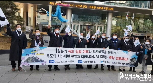 [프레스뉴스] 김대일 기자= 경기도의회 교육행정위원회 유근식 의원(더민주, 광명4)은 지난 22일 일본대사관 앞에서 독도향우회 회원들과 함께 일본 정부의 독도 침탈 야욕을 규탄하는 결의대회를 개최했다고 밝혔다.