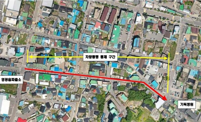 [전남=프레스뉴스] 차윤기 기자= 전남 영광군(군수 강종만)은 영광읍 영광읍파출소~기독병원간 도로 아스콘 포장 공사를 위해 도로 일부 구간을 2월 15일부터 18일까지 4일간 차량을 통제한다고 밝혔다.